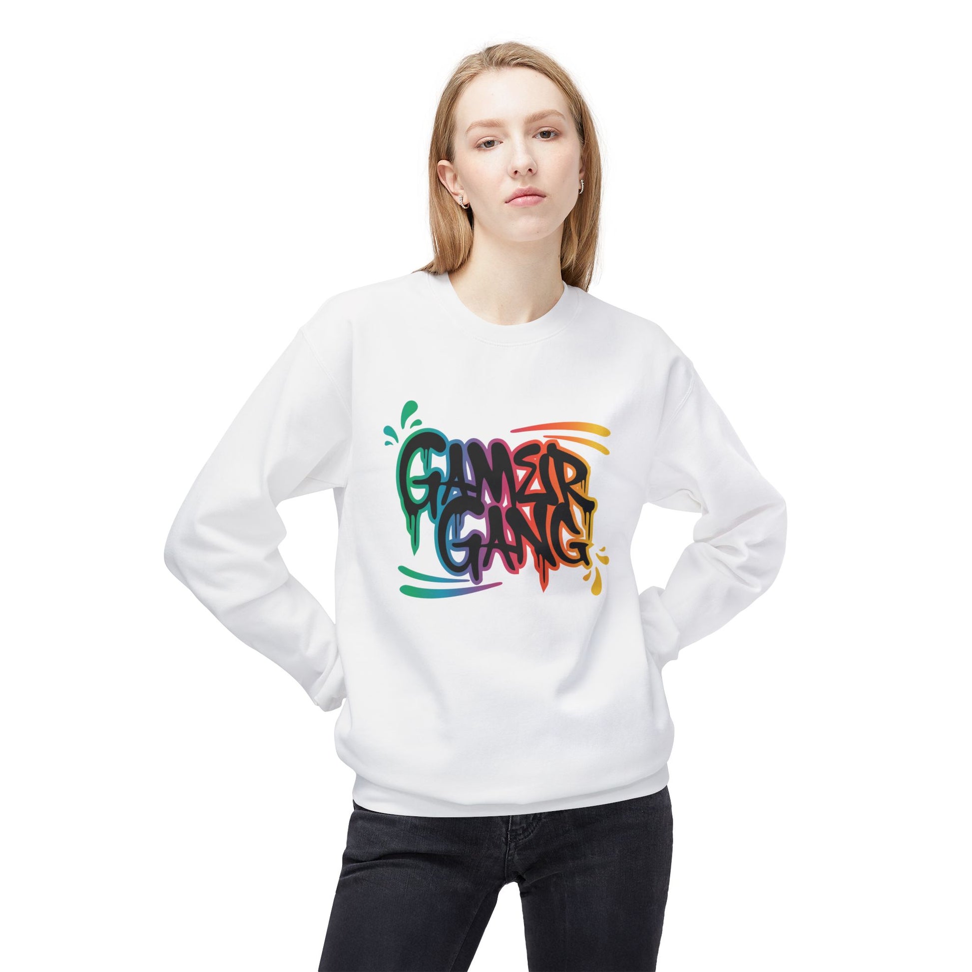 Bring color, confidence, and comfort into your everyday look with this oversized crewneck sweatshirt featuring a bold graffiti-style “Glamser Gang” logo. The rainbow-drip text looks like it’s fresh from a downtown mural — bright, loud, and unapologetically urban. With a relaxed fit and dropped shoulders, it layers easily over tees or under jackets, making it a go-to for creative sessions, weekend strolls, or just vibing with your crew.