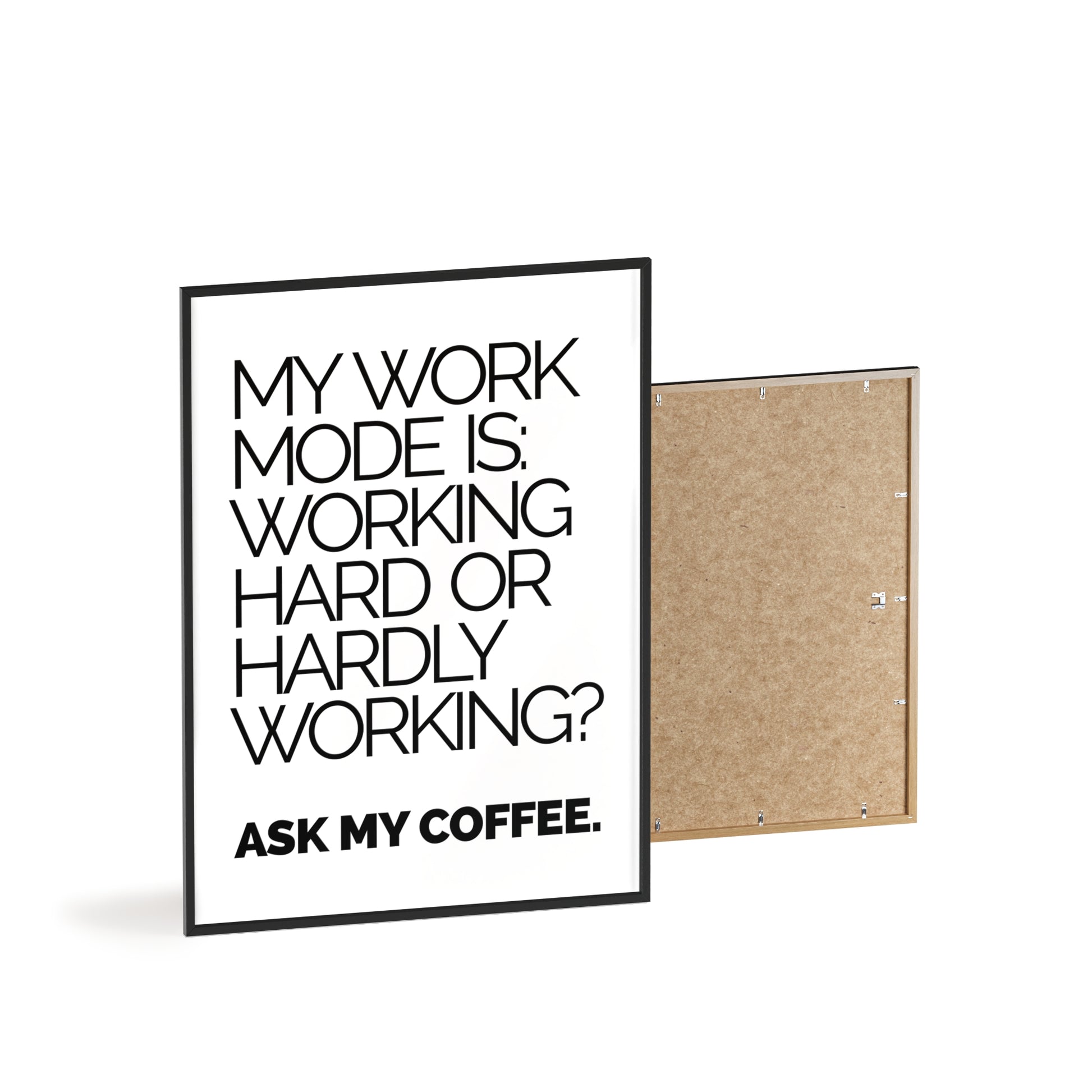 Framed Poster - “My Work Mode Is: Working Hard or Hardly Working? Ask My Coffee.” Minimal Office Wall Art