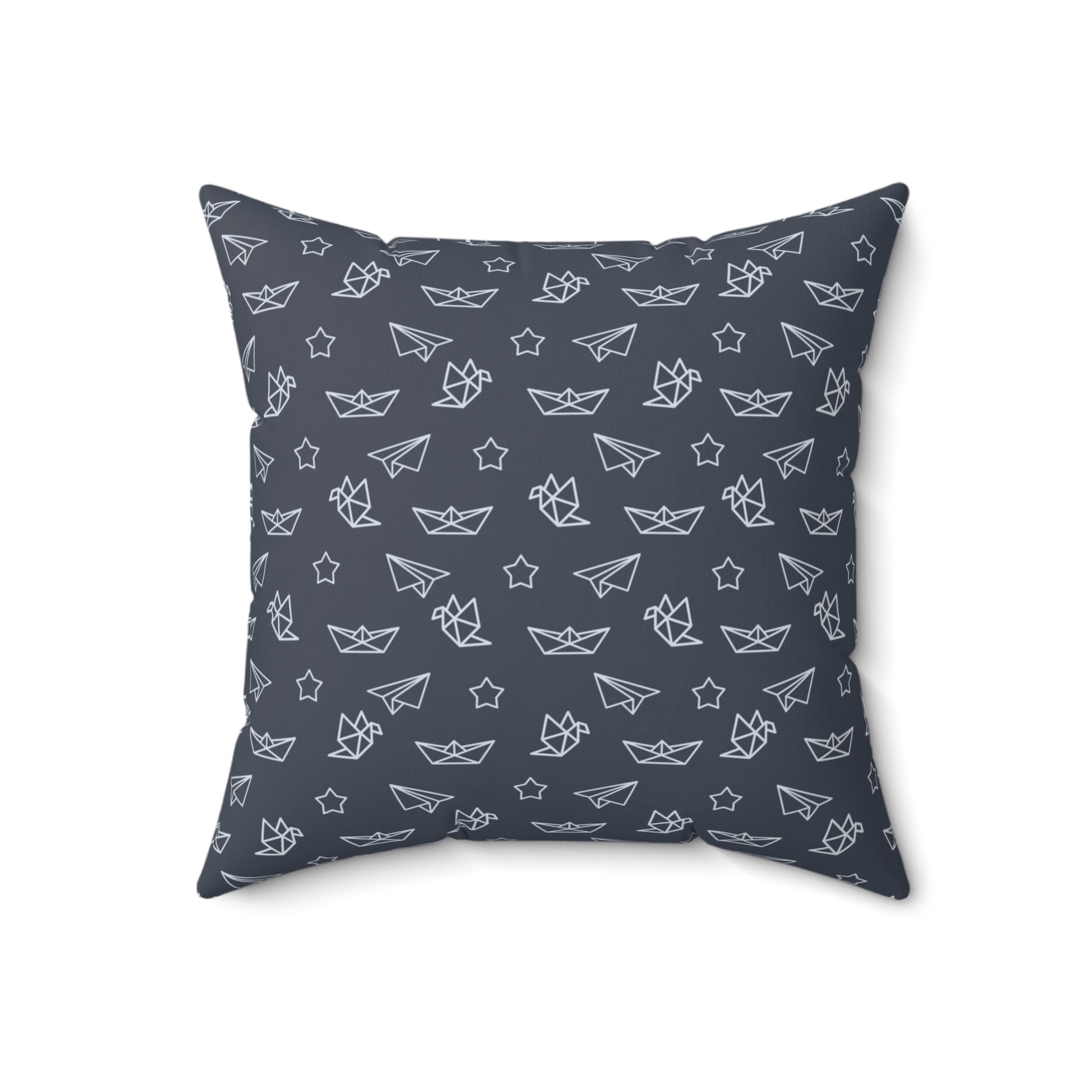 Navy Paper Plane & Star Pattern Square Pillow — Playful Kids Room Decorative Throw Pillow